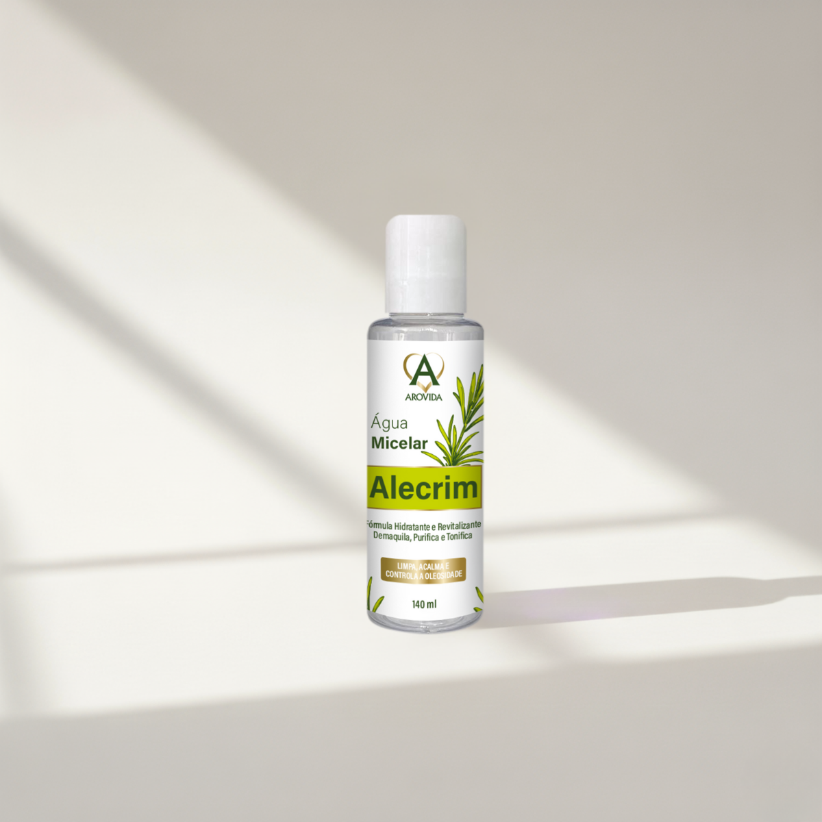 A Água Micelar Alecrim da Arovida possui uma tecnologia inovadora de ativos que atuam na limpeza e tonificação da pele, com extrato de Alecrim auxilia no combate a oleosidade e á acne, pois tem efeito adstringente e ajuda na ação anti-inflamatória. Auxilia no efeito calmante, deixando a pele limpa e tonificada.