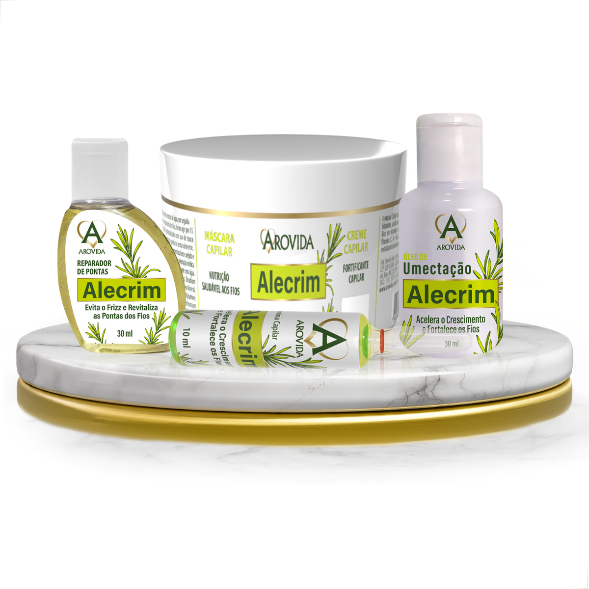 O Kit Capilar de Alecrim da Arovida Cosméticos oferece um tratamento completo que fortalece os fios, estimula o crescimento saudável e equilibra a oleosidade do couro cabeludo. São 4 produtos que atuam em sinergia para restaurar a saúde do cabelo da raiz às pontas.