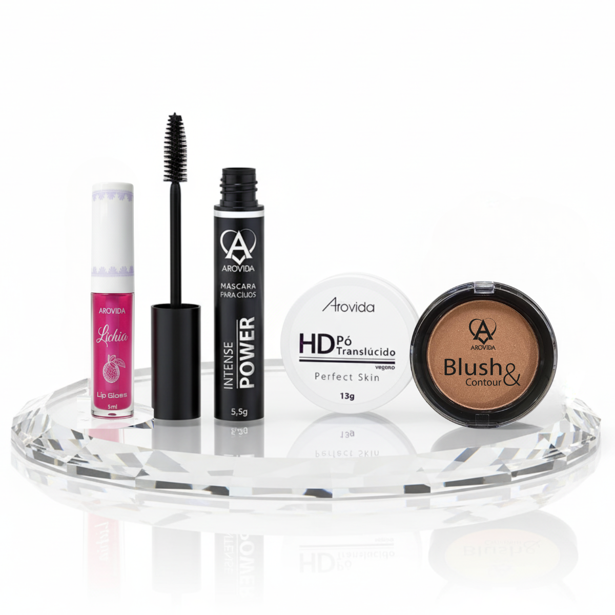 Kit Maquiagem Arovida – Beleza, Brilho e Acabamento Perfeito!