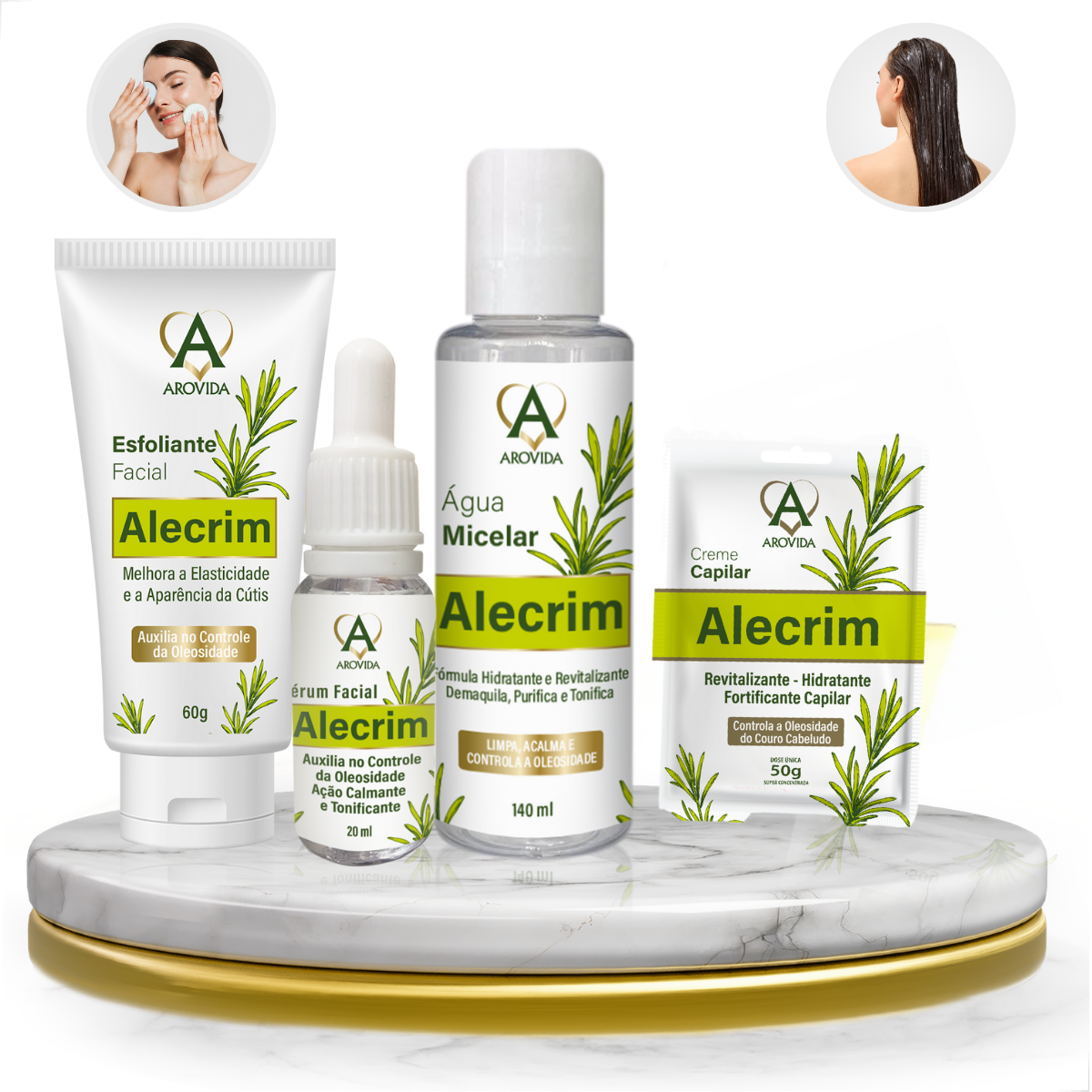 O Kit Skincare Alecrim da Arovida Cosméticos é a escolha ideal para peles oleosas, acneicas ou que precisam de um cuidado refrescante e purificante. Com 4 etapas de tratamento, ele limpa, esfolia, hidrata e revigora a pele com o poder natural do alecrim.