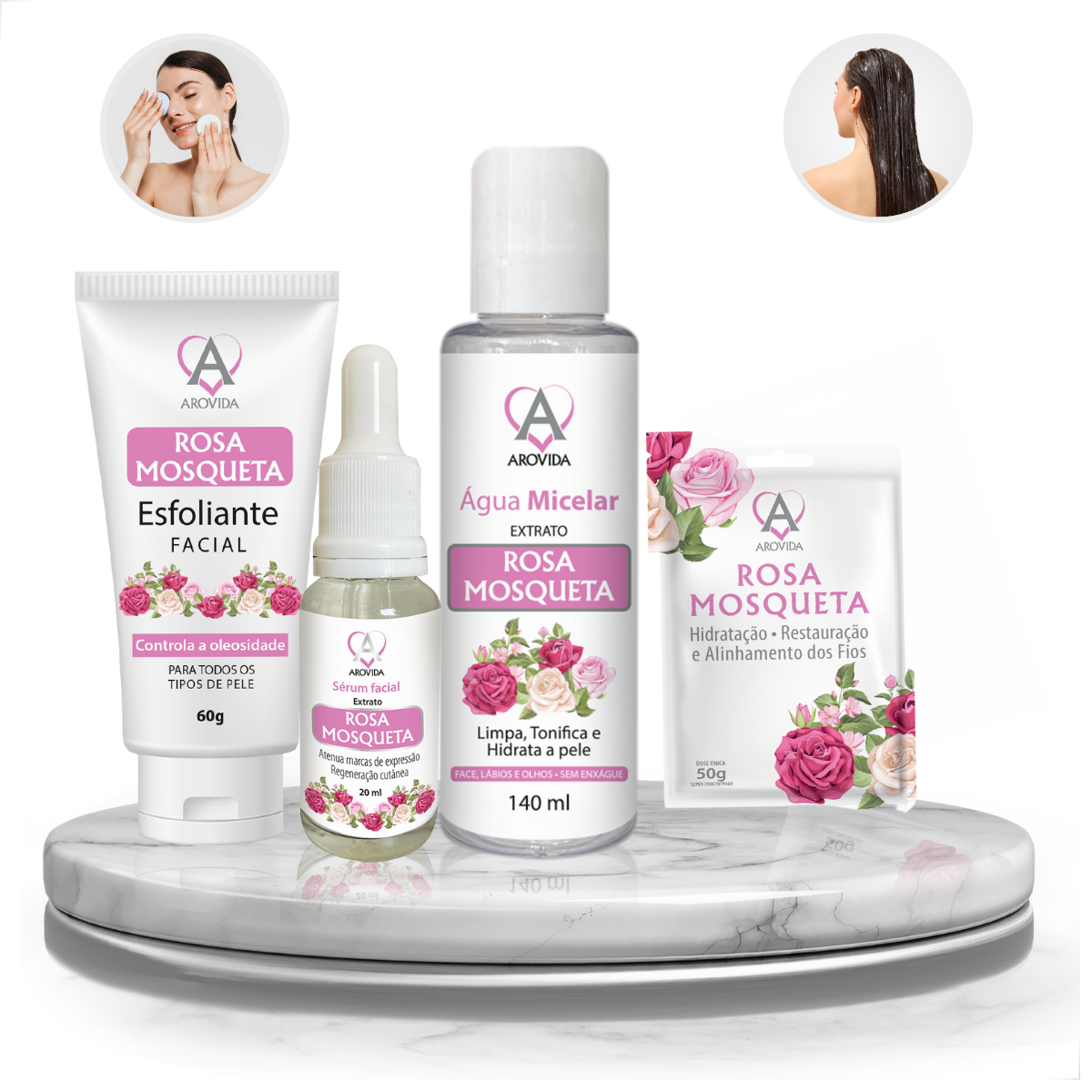 O Kit Skincare Rosa Mosqueta da Arovida Cosméticos reúne 4 etapas essenciais para deixar sua pele limpa, renovada, hidratada e iluminada. Com o poder regenerador da Rosa Mosqueta, esse combo é ideal para quem busca firmeza, viço e uniformidade na pele.