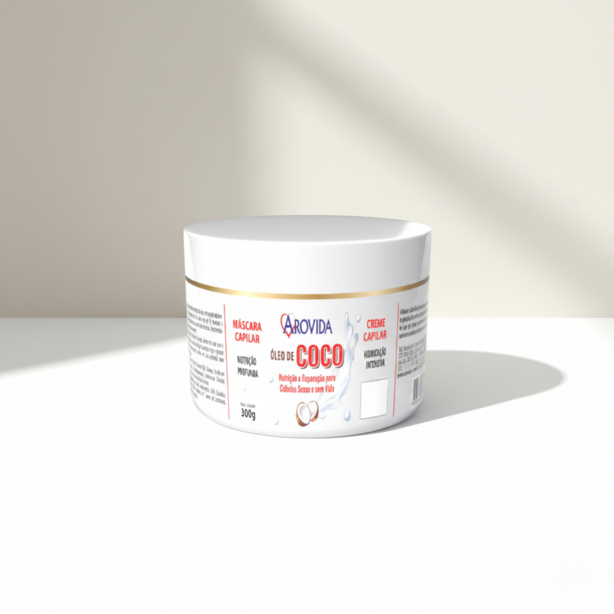 Para cabelos ressecados e desidratados, tem em sua fórmula alta concentração de Óleo de Coco 100%. A Máscara Capilar Óleo de Coco da Arovida tem poder de condicionamento garantido. Rico em Óleos Vegetais e Ácidos Graxos auxilia na retenção de água que penetra profundamente na Fibra capilar repondo os nutrientes e deixando os cabelos sedosos e controlados por mais tempo.
