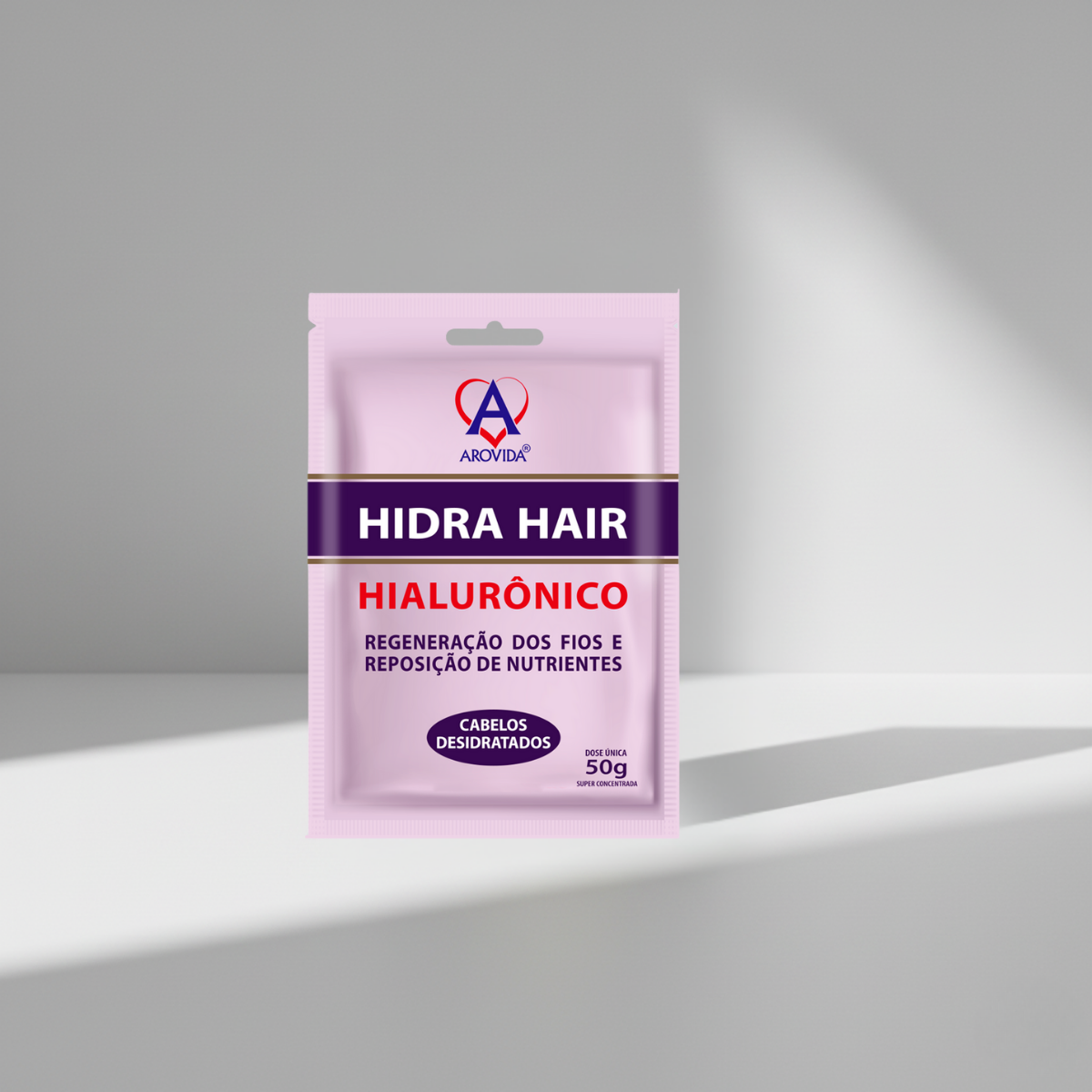 O Sachê Hidra Hair Hialurônico Arovida conta com a ação hidratante e preenchedora do ativo, ele ajuda a proteger a fibra capilar e a evitar a abertura das cutículas, retendo o tratamento no interior dos fios. Isso não apenas ajuda a reparar danos como evita a quebra e dá mais brilho as madeixas.